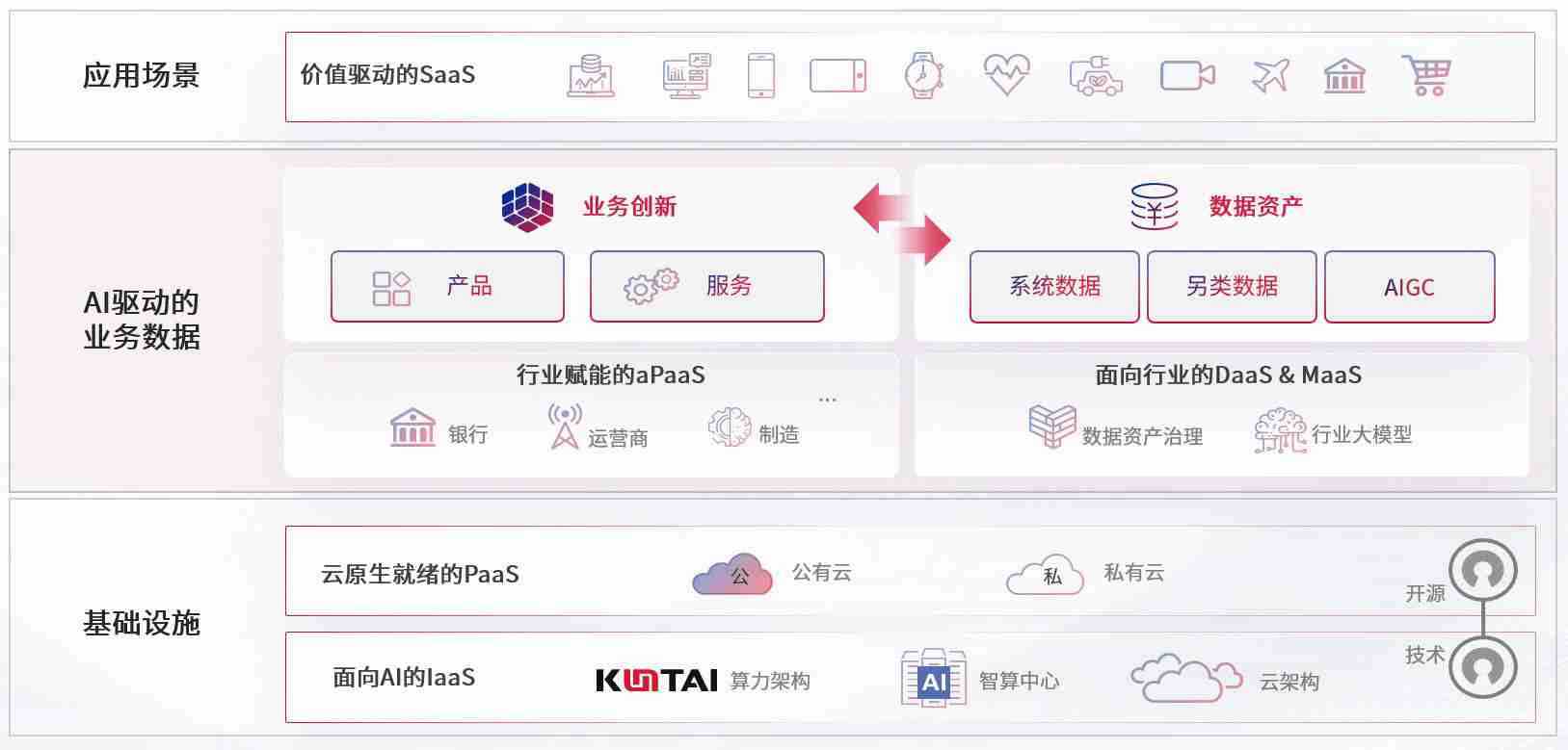 数字时代,,,围绕企业数字化转型的关键要素,,365钱包数码开创性的提出数云融合战略和技术体系框架,,,着力在云原生、、、、数字原生、、、AI原生和信创产业上架构产品和服务能力,,为处在不同数字化转型阶段的快消零售、、、、汽车、、、金融、、医疗、、、、政企、、、、教育、、、运营商等行业客户提供泛在的敏捷IT能力和融合的数据驱动能力,,,构建跨界融合创新的数字业务场景和新业务模式,,助力企业级客户建立面向未来的核心能力和竞争优势,,全面推动社会的数字化、、、、智能化转型升级。。。